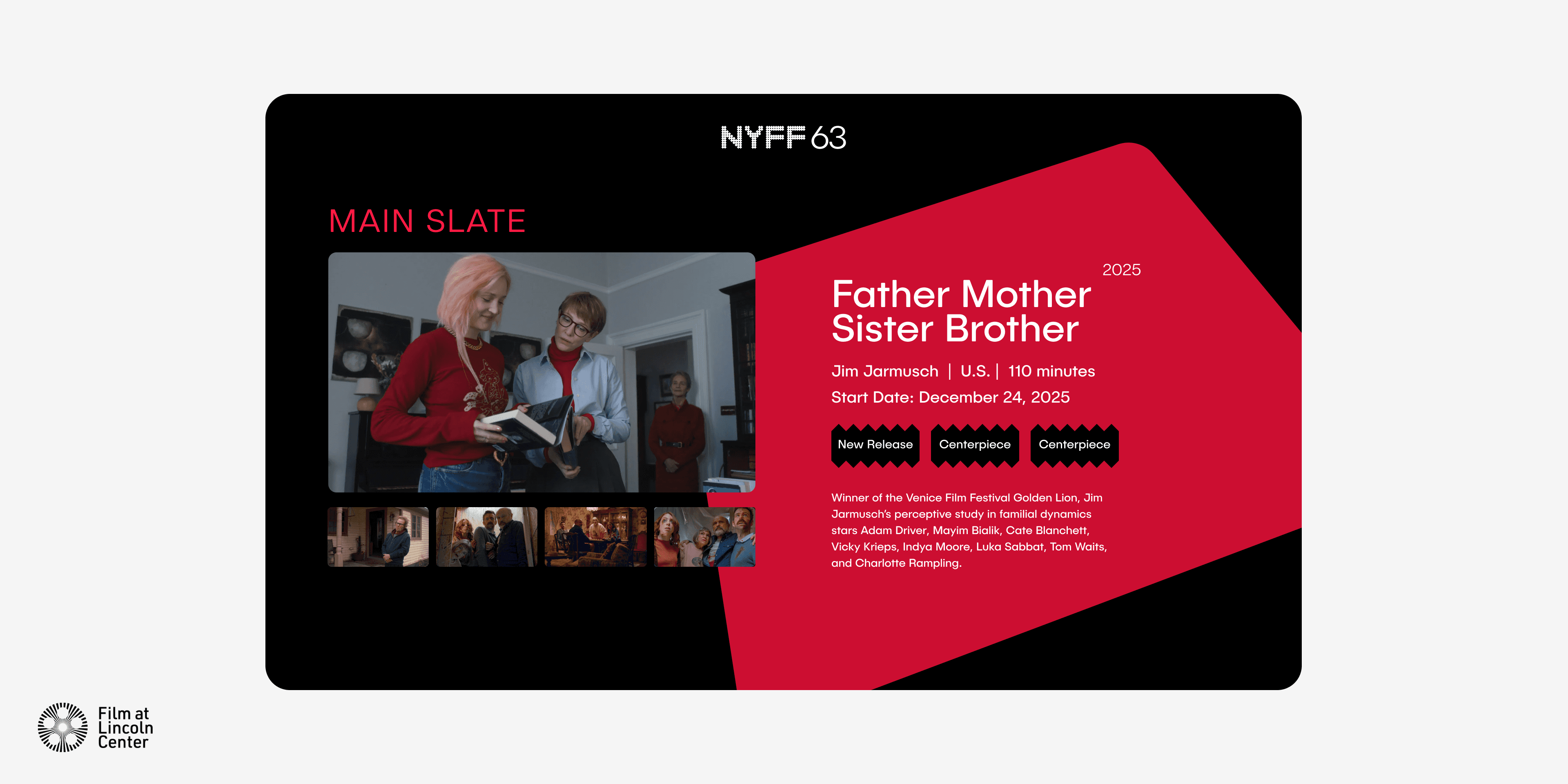The goal was to reimagine New York Film Festival (NYFF)’s visual identity through a custom rhombus-based typography system that reflects the festival’s multidisciplinary reach across film, art, and culture. The new identity highlights individuality and creative diversity while unifying these perspectives under a bold, contemporary visual language.